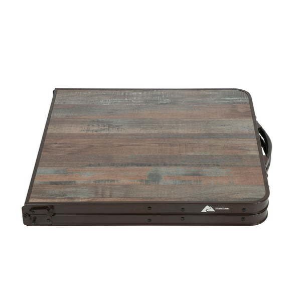 Camping Table, Brown:Fabric: 600D polyester fabric with PVC coating for weather and moisture resistanceThree Table Heights (inches): 21", 24", and 27.25"Table Dimensions (at tallest height): 47.2" x 23.6" x 27.25"Stool Dimensions (inches): 10.6" x 7.8" x 14.1"Table top: Heat-resistant and easy-to-clean MDF table top board in wood grain designDurable steel frame with powder coating for resistance to chips, scratches, and corrosionConvenient pack and carry design for easy moving and storageWeight Capacity (lbs.): Table 110 lbs.; Stool 300 lbs.